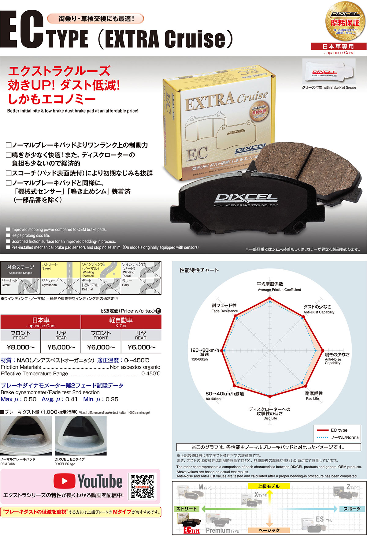 - ECタイプはストリート専用です。サーキットでのご使用はできません。万が一、サーキットで使用し早期摩耗等を起こしたとしても、弊社では一切責任を負いかねますことを予めご了承ください。