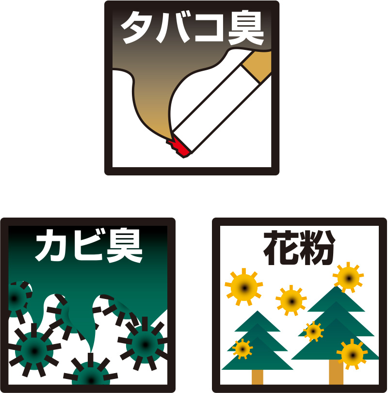 タバコやカビのイヤなニオイをとり、キレイな空気を供給します。