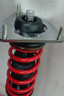 スチールアッパーマウントを採用しています。(一部車種は純正アッパーを再使用) ピロボール仕様はダイレクト感が増すものの作動音や振動が起こりやすいためにこれに匹敵する強靭なスチール材とし、専用ゴムブッシュマウントを採用しました。