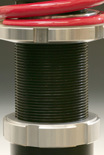 ネジ式による車高調整ではショックケースからバンプラバーまでの距離を変化させてしまうため、車高を落とすと充分なストロークが得られない状態になってしまいます。全長調整式を採用することでショックケース長を変更して車高を変化させることができストローク量を常に確保できることから、乗り心地が犠牲になりません。その為、常に充分な乗り心地が得られた状態で車高を調整することが可能です。