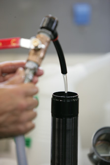 常に動きのあるショック内部のピストンを制御するオイルは、そのピストンの動きにより熱が発生し蓄積されることで“熱ダレ”という状態へ移行します。熱ダレ状態になった場合、ショックの減衰力特性が著しく低下し、走行時の安定性やハンドリングに悪影響を及ぼします。ただし、ただ熱ダレだけを考慮したという訳ではなく、車両の持つ特性やダンパースペックに応じた最適な粘度にも十分配慮した上でオイルを選択しています。